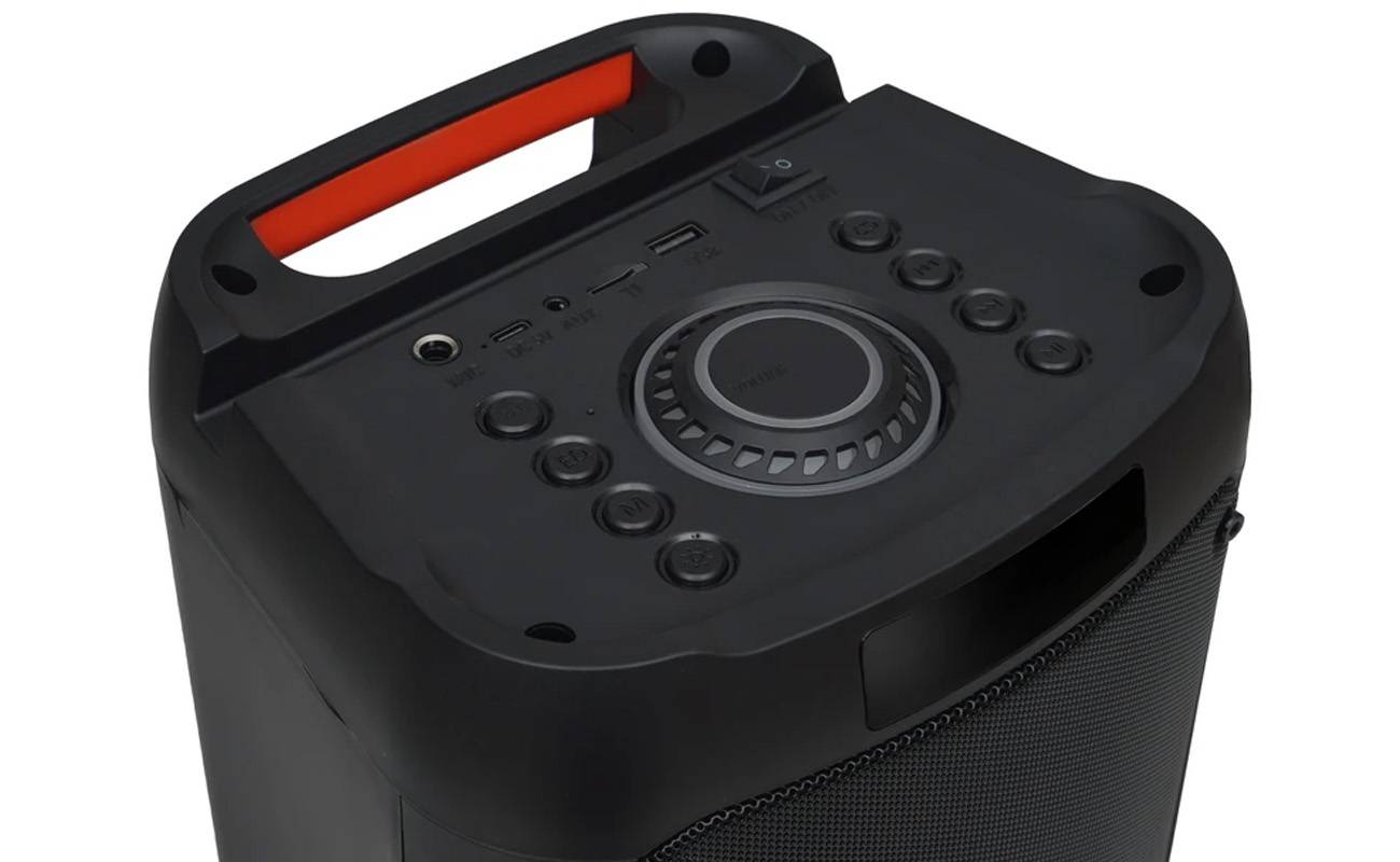 این مدل با طراحی حجیمتر و ساختاری مستحکم، حس یک اسپیکر حرفهای را القا میکند. ابعاد ۲۱۳x۱۹۵x۴۲۵ میلیمتری و وزن ۲.۹ کیلوگرم آن در نگاه اول ممکن است بزرگ به نظر برسد، اما در عمل بهدلیل طراحی متوازن و دسته حمل، جابجایی آن ساده و بیدردسر است. این وزن، علاوه بر کمک به ثبات دستگاه روی سطوح مختلف، نشانهای از قدرت و توان بالای سیستم صوتی داخلی آن نیز هست. بدنه اسپیکر از پلاستیک مقاوم ساخته شده که در برابر ضربات خفیف و استفاده روزمره مقاومت مناسبی دارد. اما چیزی که در نگاه اول بیشتر از همه جلب توجه میکند، نورپردازی LED جذاب آن است. این نورها با موسیقی همگام میشوند و حالوهوای خاصی به فضا میدهند؛ بهویژه در محیطهای کمنور یا شبهنگام، نمایی دیدنی و مهیج ایجاد میکنند.با اینکه وزن اسپیکر نسبت به برخی مدلهای کوچکتر کمی بیشتر است، اما طراحی آن بهگونهای است که قابلیت حمل بالایی دارد. این دستگاه برای استفاده در مهمانیها، مراسم، جلسات تمرینی، کلاسهای ورزشی، سفرهای گروهی و بسیاری موقعیتهای دیگر بسیار کاربردی است.